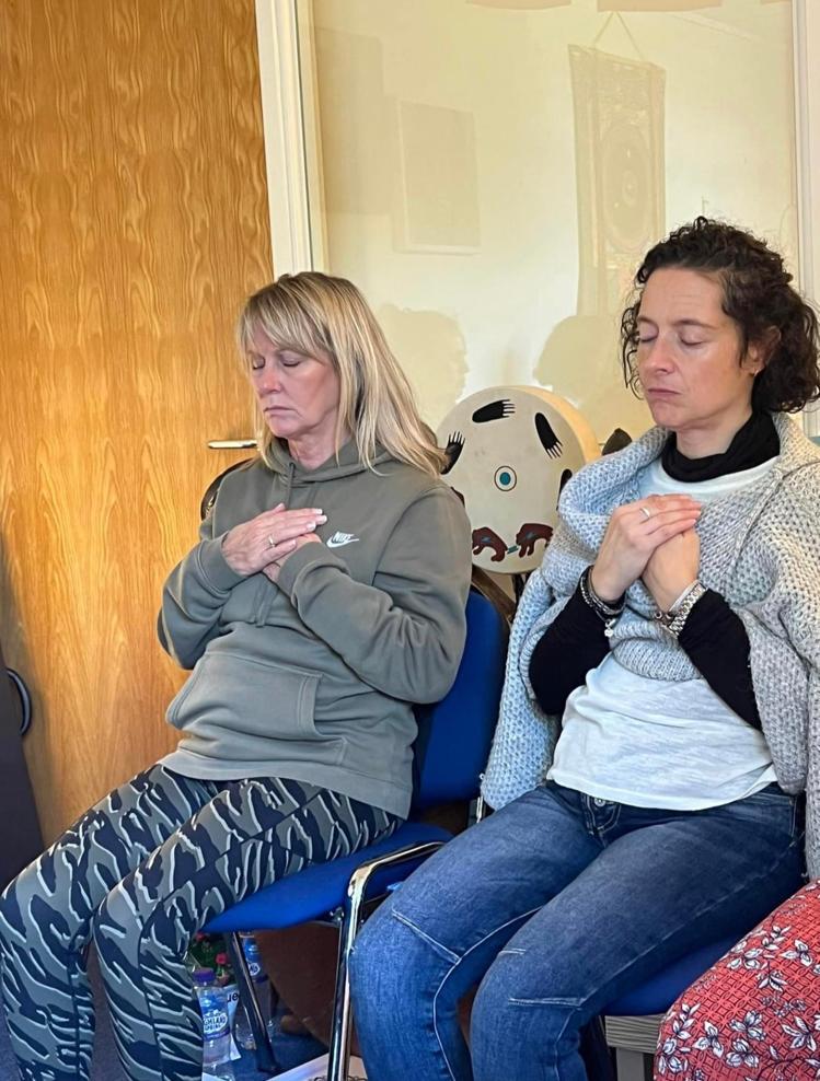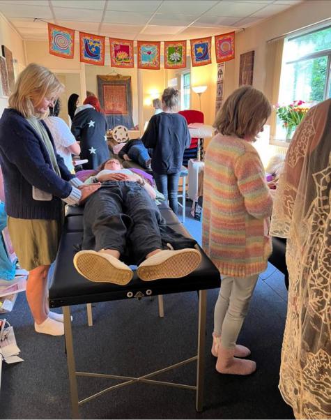 Giving each other treatments using the first two sacred symbols learnt following the first attunement of the weekend!