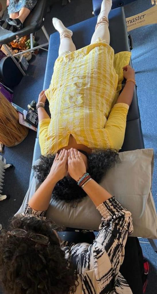Learning how to self heal with the hand Reiki hand positions following their first attunement.